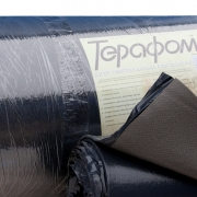 Характерной особенностью Терафома, кроме использования химически сшитого пенополиэтилена с поперечносвязанной сетчатой молекулярной структурой, является наличие протекторного слоя из полиэтилена толщиной 50 мкм, что делает данный материал практически паронепроницаемым и малогигроскопичным, с очень низким процентом водопоглащения менее 1% (по объему).